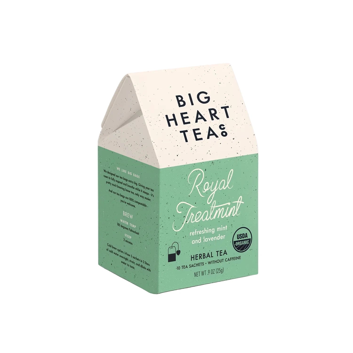 Royal Treatmint herbal tea box featuring refreshing mint and lavender blend.