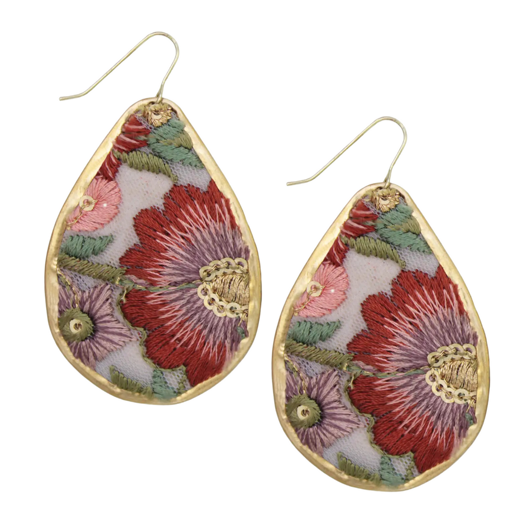 Autumn Bloom Embroidered Teardrop Earrings